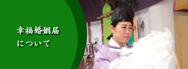 幸福婚姻届を活用していただくにあたって、良縁祈願、婚姻届を手元に残せる婚姻フォルダ(ご記入いただいたものをあらかじめコピーをとって頂く必要があります。)、幸福婚姻絵馬、幸福ハート絵馬、夫婦守りなども準備しています。ご希望の場合、またご不明な点がありましたら幸福神社までお問い合わせください。