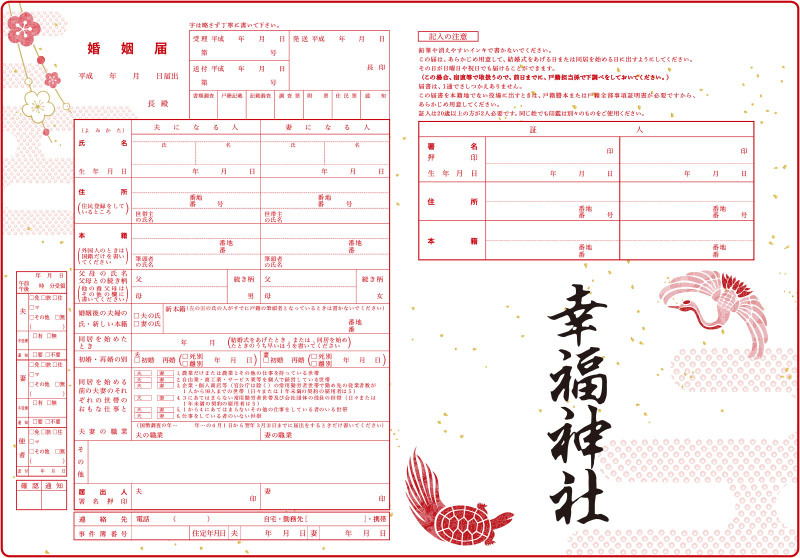 150年目の例大祭を記念として作ったものが幸福神社オリジナル「幸福婚姻届」です。